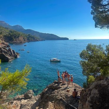 Stay in a luxury villa in Mallorca located between Deià and Sóller, in the heart of the UNESCO-listed Serra de Tramuntana. This exclusive Mallorca vacation rental is ideal for longer-term stays, offering privacy, views, and authentic island character. Overlooking dramatic sea cliffs and the Mediterranean, the villa is surrounded by pine and olive groves, creating a quiet and secluded setting.